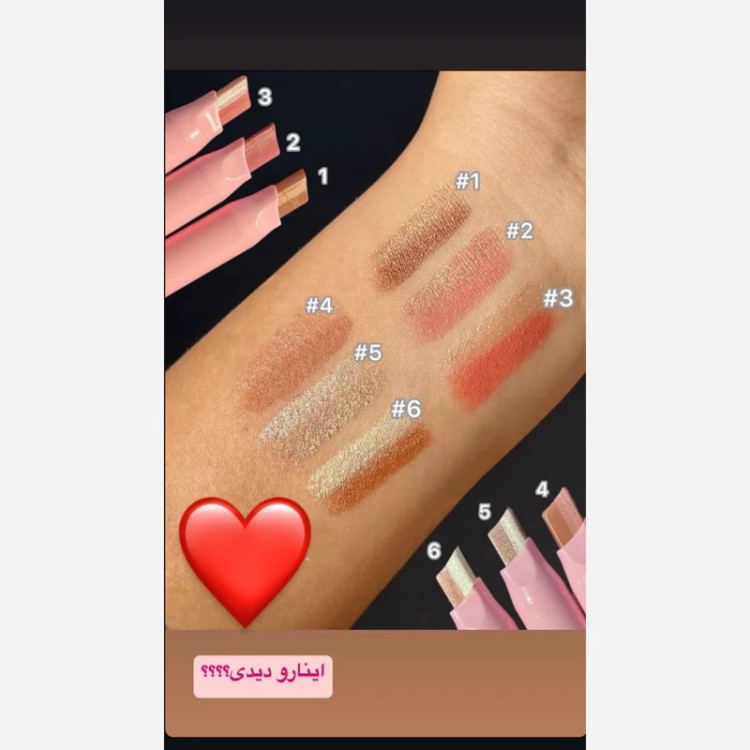 مثل یه آرایشگرحرفه ای سایه بزن🥰👌 🩷سایه چشم استیکی دو رنگ دراگون رانی 😒💯اورجینال 🌈حاوی 6 سری رنگ سایه استیکی ✅هر عدد حاوی دو رنگ زیبا با فینیش مات و شاین با طراحی استیکی با برش مستطیلی و امکان استفاده آسان تر ✅ مناسب هر نوع و رنگ پوستی با کیفیت عالی ماندگاری بالا و متناسب با هر سلیقه ای 🥰عاشقشون میشی بعدازیکباراستفاده ازبس جذاب وخوشکل وراحته 🩷دیگه برای مراسم ومهمونیامیتونی خیلی حرفه ای وشیک سایه چشم بکشی 💯کاملاماندگار؛ضداب باپیگمنت خیلی بالا ✅کیفیت عالی و ماندگاری بالا 💯متناسب با هر سلیقه ای 😘مناسب استفاده شخصی و میکاپ آرتیست ها 💯دارای بافت نرم و روان 💯اورجینال ✅انقضا 2028 ❌تعدادمحدودموجود❌