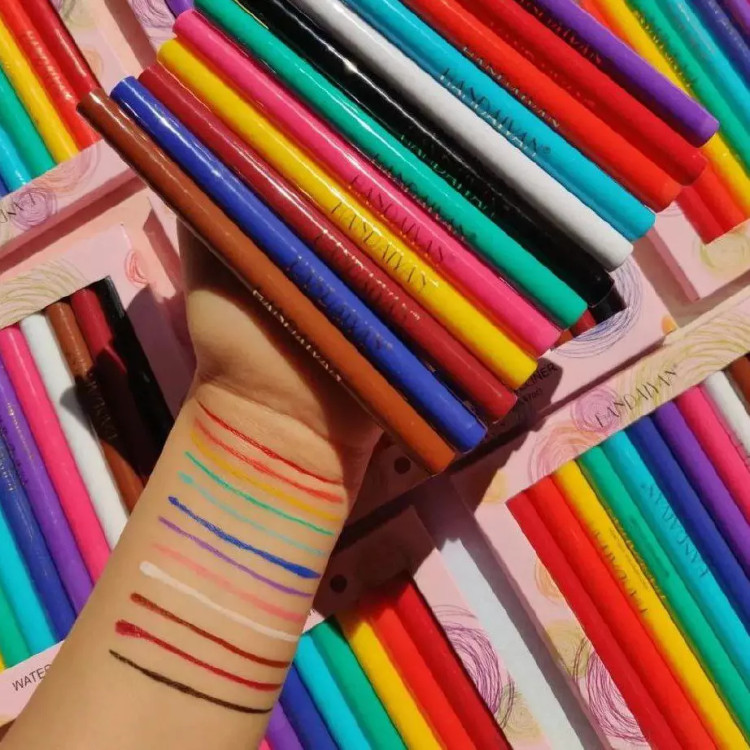 ⚜ خط چشم ماژیکی رنگی ماژیکی ◾️برند محبوب هندیان HANDAYAN ▪️ماژیکی ▪️۲۴ساعته ▪️پیگمنت عالی ▪️بدون ریزش و ترک خوردگی روی پوست ▪️اصلا پخش نمیشه ▪️کاملا مات ، مایع ، ضدآب 🌈 ۱۲رنگ محبوب🌈 ▪️ماژیکی 💳قیمت هرعدد:۷۵\u002F۰۰۰تومان فروش به صورت تک رنگ.پک کامل موجودنیست ❌تعدادمحدودموجود❌